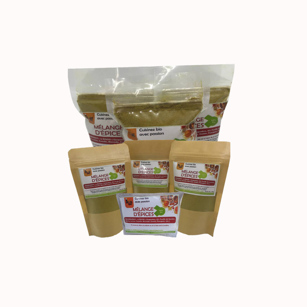 Ici, nous allons introduire les différents produits de notre marque « Royal Epice ». En effet, CHRISPA TRANSFORMATION, de par ses connaissances et expériences en production des denrées agricoles et leur transformation, s’est donné pour objectif de répondre aux besoins de la population en ce qui concerne la demande en épices de bonnes qualités et très nutritifs.